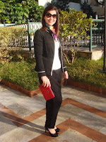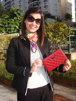 E para comemorar essa data especial, o look de hj tb é especial, cenário especial, e a cara do blog!!! Um look formal, bem chique, com jaqueta estilo chanel, lenço colorido, bolsa estruturada e clássica, mas com uma pegada mais moderna com uma calça saruel e um scarpin pesadão!!!!