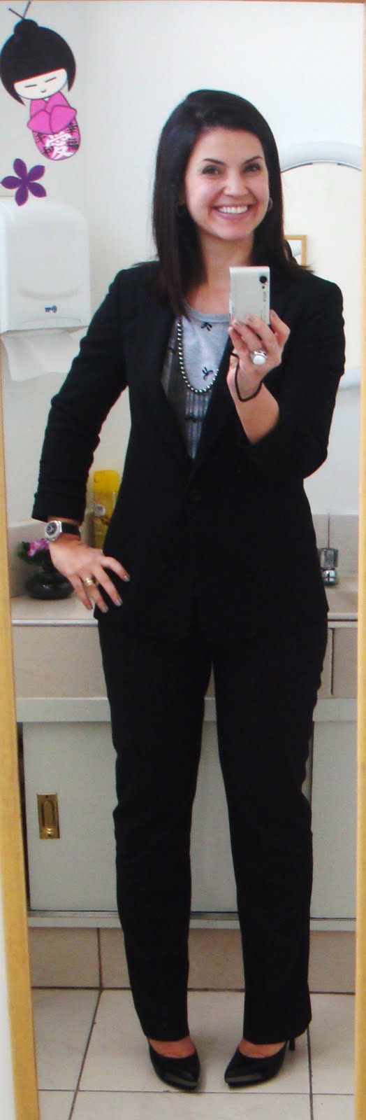 E vamos ao look de hj, preguiçoso e de ressaca, acho que só hj meu corpo sentiu, estou rouca, com o corpo todo dolorido, mas com o astral lá em cima!!! Mas o look de hj não tem nada de mirabolante, calça reta, blazer, camiseta e scarpin!!