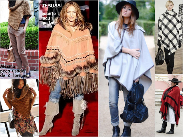 Meninas que bom que gostaram. E quanto aos ponchos, é opinião pessoal mesmo, trauma de infância sei lá. rsrsr Mas os mais curtinhos acho até bonitinho.Na montagem com a Jennifer Lopez tem um curto mostrado em dois looks que achei bonito.