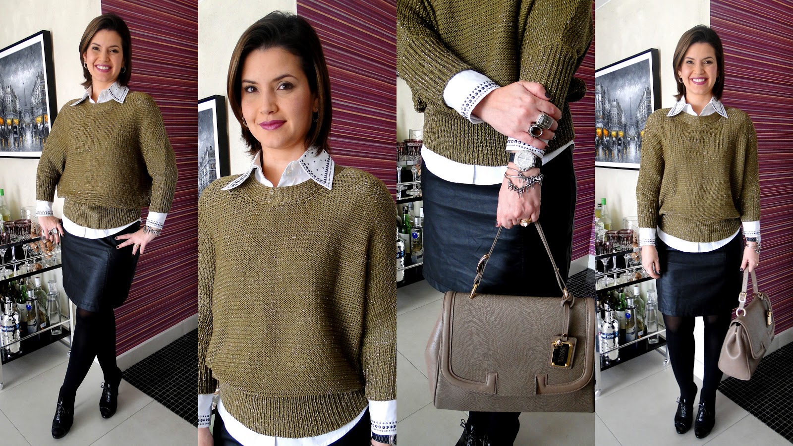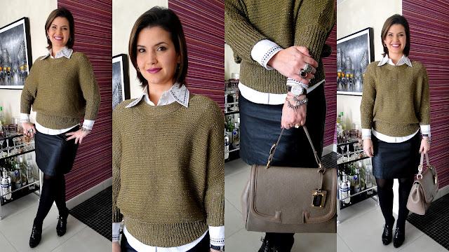 Work de Quinta-Feira: de saia de couro e tricot!