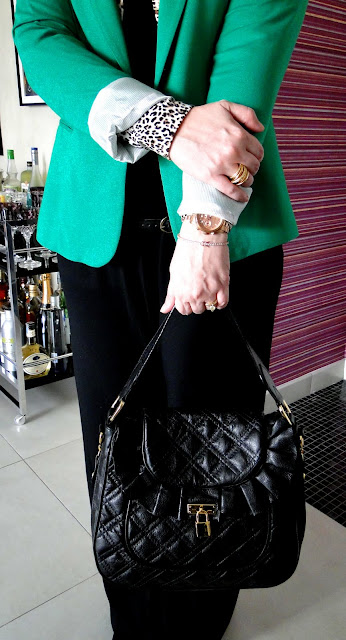54. bom, eu sei que a formalidade é maior, mas juro que tá super formal ainda. e amei essa combinação onça, preto e verde. o blazer é tudo de bom. passei na zara e vi um rosa e um laranja lindos, além de um verde tb!