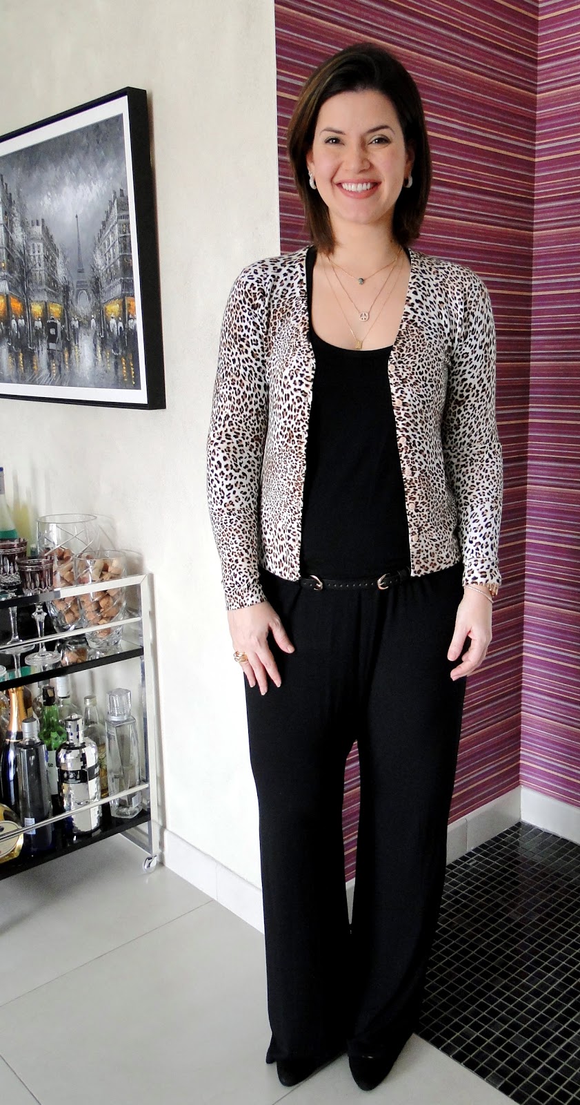 macacão saruel preto e cardigan de oncinha...minhas paixões eternas rsrsrsrs