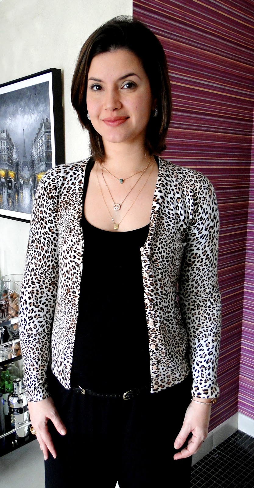 Você está linda com o macacão e o cardigan de oncinha... Ficou uma combinação perfeita!!