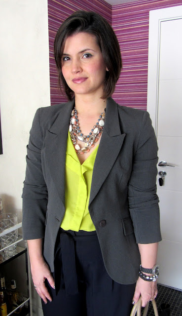 Oiii meninas!!!E na semana passada eu postei um look cheio de cores e foi um sucesso! Mas muitas leitoras falam que não tem coragem de ousar nas cores, que ainda são tímidas rsrsrs e no meu último dia de workshop, na quinta-feira passada eu usei um look mais sóbrio, pois tinha almoço com clientes, mas queria ser criativa e ainda usar cores...