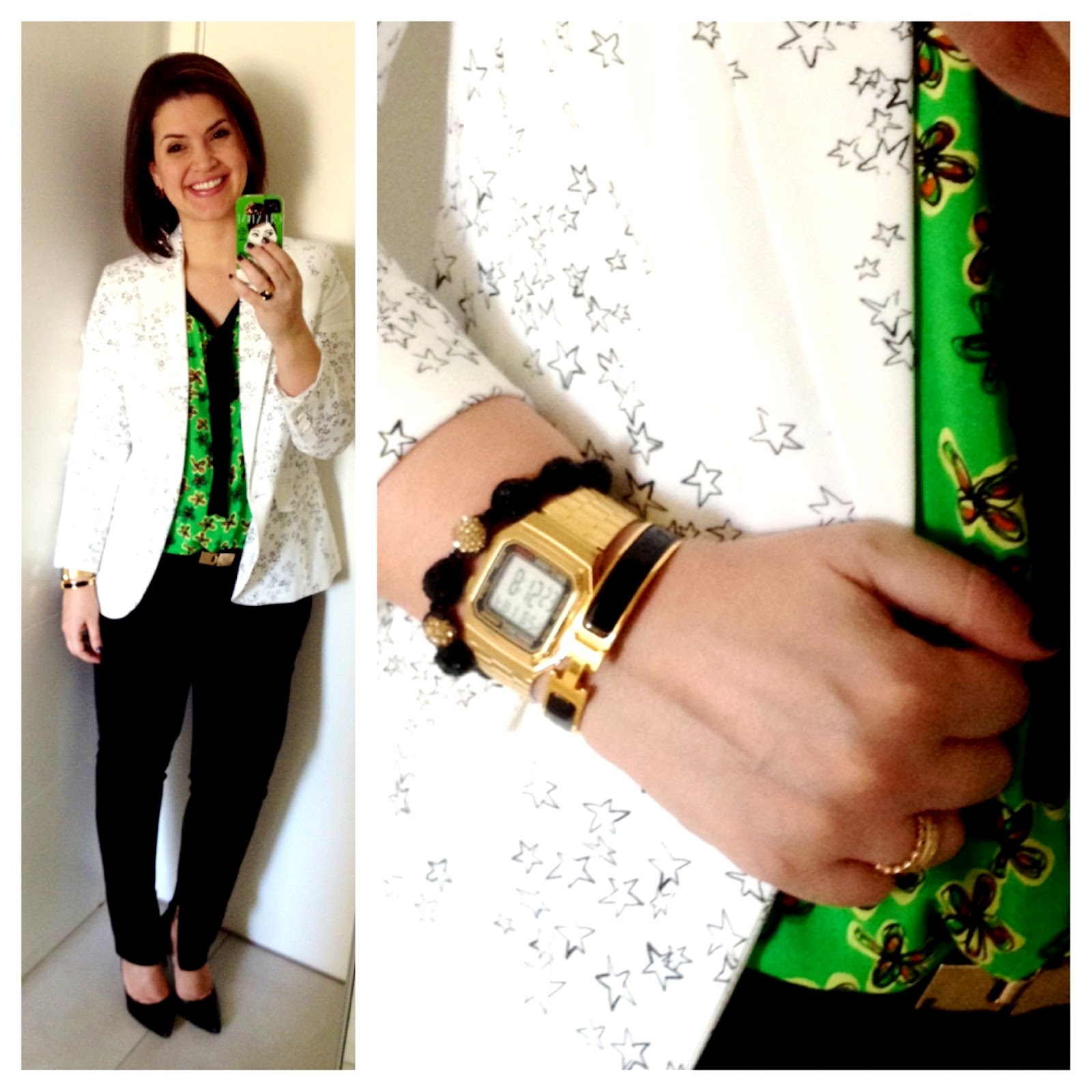 calça ZARA/ blazer e regata ANDREA MARQUES para C&A/ scarpin CAPODARTE/ relógio CASSIO/ pulseira HÈRMES/ shambala presente da Maria Ester