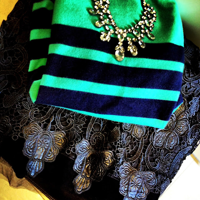 E mais um look social, cheio de ousadia...mix de renda, couro, listras, cores...