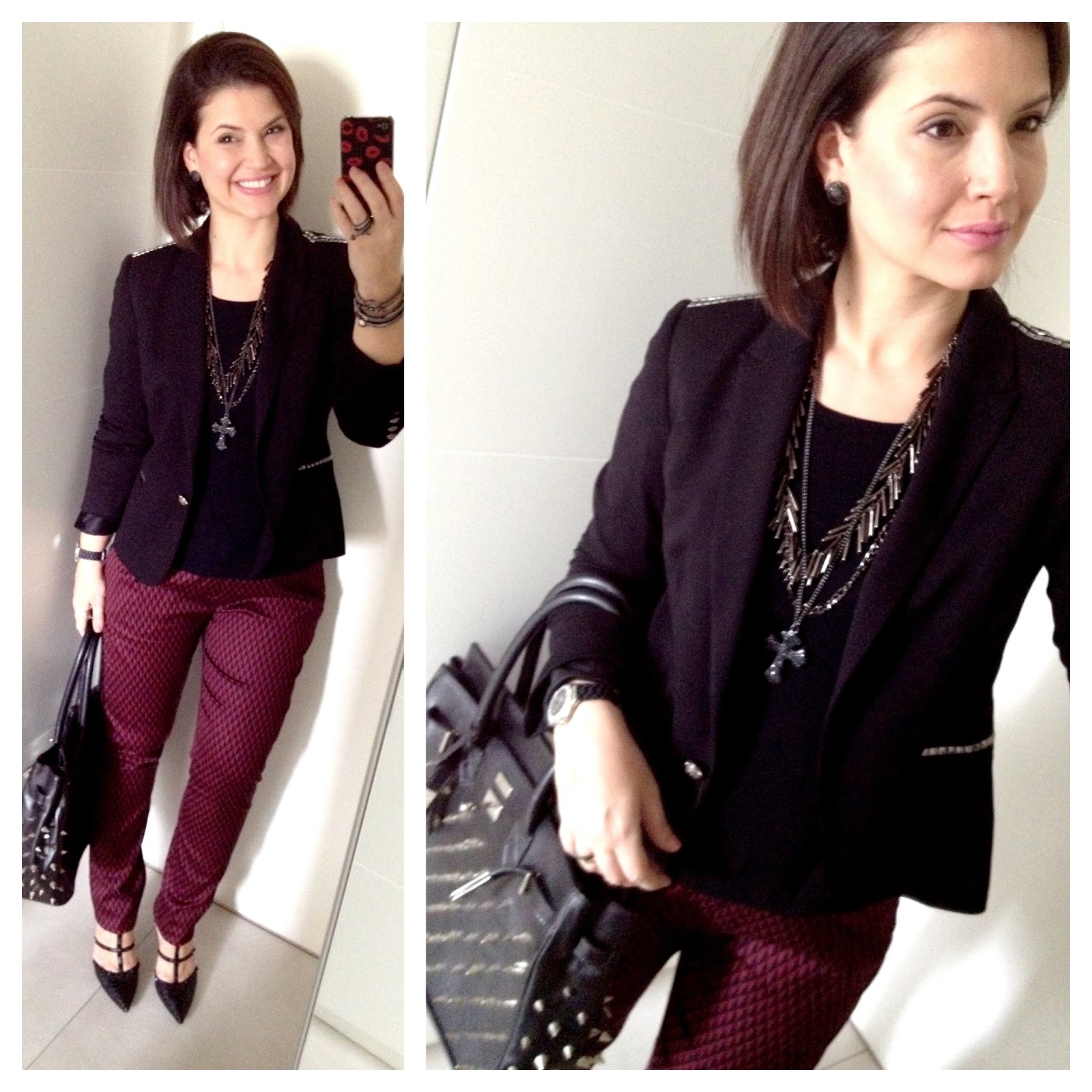 Adorei o look da calça vinho, também sou fã de vinho com preto ou marinho.