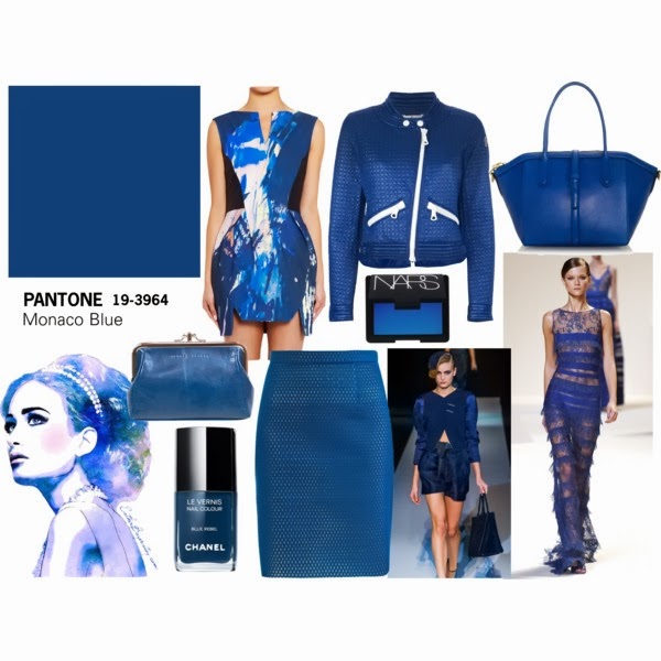A cor anda aparecendo nas roupas, nos esmaltes, nos acessórios, até no makeup ... e nessa próxima foto podemos comparar o Monaco Blue com os outros tons de azul...