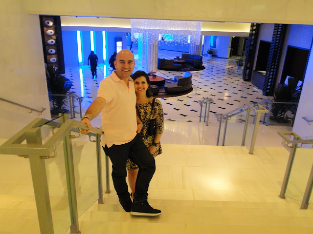E á noite, dentro do hotel, aproveitando a balada com o maridão, afinal quando esses meninos nascerem isso vai demorar rsrsrs olhem o chão azul...bem Miami Beach rsrsrsrs